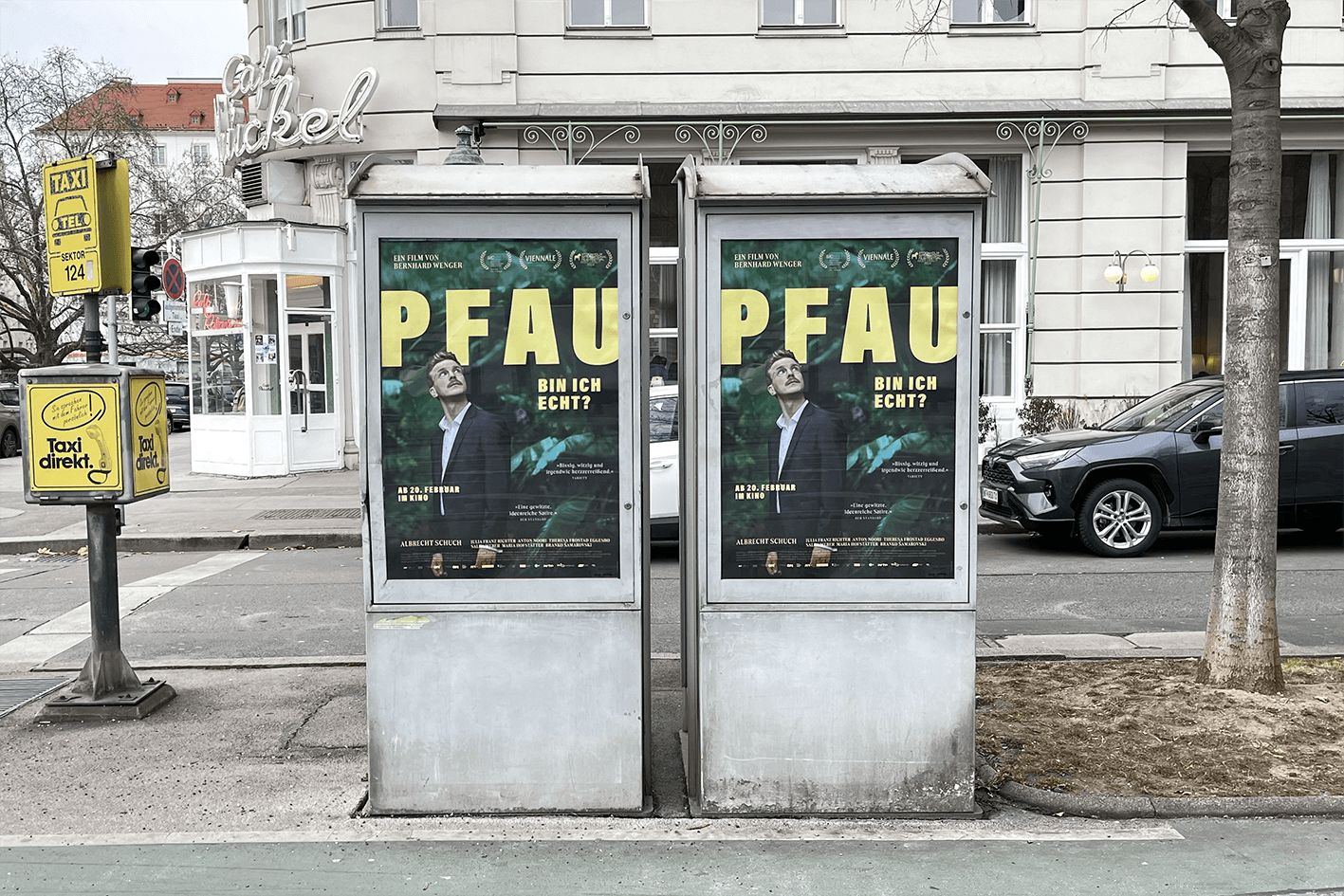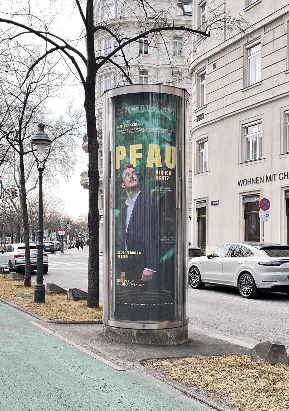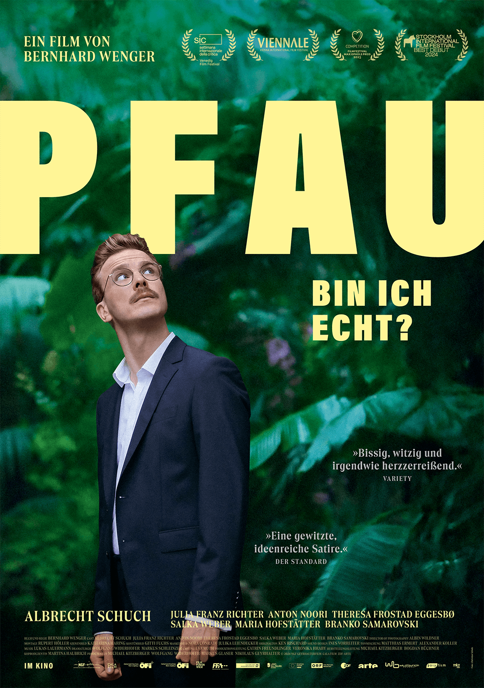 The poster for PFAU–BIN ICH ECHT? shows Matthias (Albrecht Schuch) in a dark suit, lost in a lush, surreal jungle of emotions. The bold typography hints at his playful yet heartfelt journey to discover who he truly is. The mix of sharp tailoring and untamed nature perfectly captures the film’s quirky, insightful exploration of identity and self-discovery.
